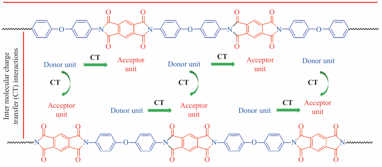 Traditional polyimide (PI) films are typically brown or amber-colored transparent materials. This is due to the presence of strong electron donors (diaminodiphenyl ether, ODA) and electron acceptors (p-benzenetetracarboxylic dianhydride, PMDA) within the PI molecular structure. These components form strong charge-transfer complexes (CTC) within or between PI molecular chains, causing the chains to pack tightly. This results in significant absorption of visible light and low transmittance. To achieve colorless, transparent polyimide, monomer regulation must occur prior to synthesis to disrupt conjugated interactions within the molecular chain, eliminating charge transfer phenomena at the molecular level. However, structurally reducing CTC generation to obtain favorable optical properties often comes at the cost of altering other material characteristics.