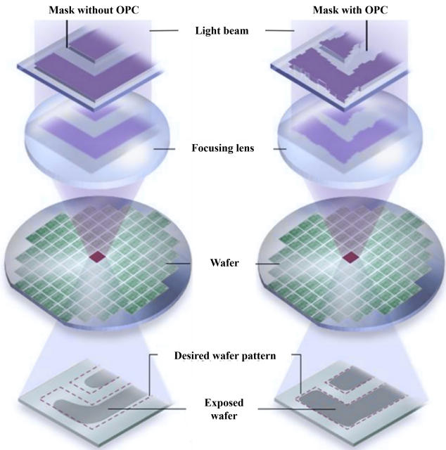OPC is currently the most widely used correction technology. It counteracts pattern deviations during lithography by pre-distorting the mask patterns. Based on the optical model of the lithography process, it calculates the deviations of the actual lithographed patterns, and then reversely modifies the designed mask patterns. For example, adding “hammerhead” structures at the ends of lines, and adding “chamfer” or “rounded corner” compensations at the corners. It can be divided into two types: Rule-Based OPC and Model-Based OPC. The latter calculates the correction amount through precise optical and photoresist models, offering higher correction accuracy and being suitable for advanced manufacturing processes.
